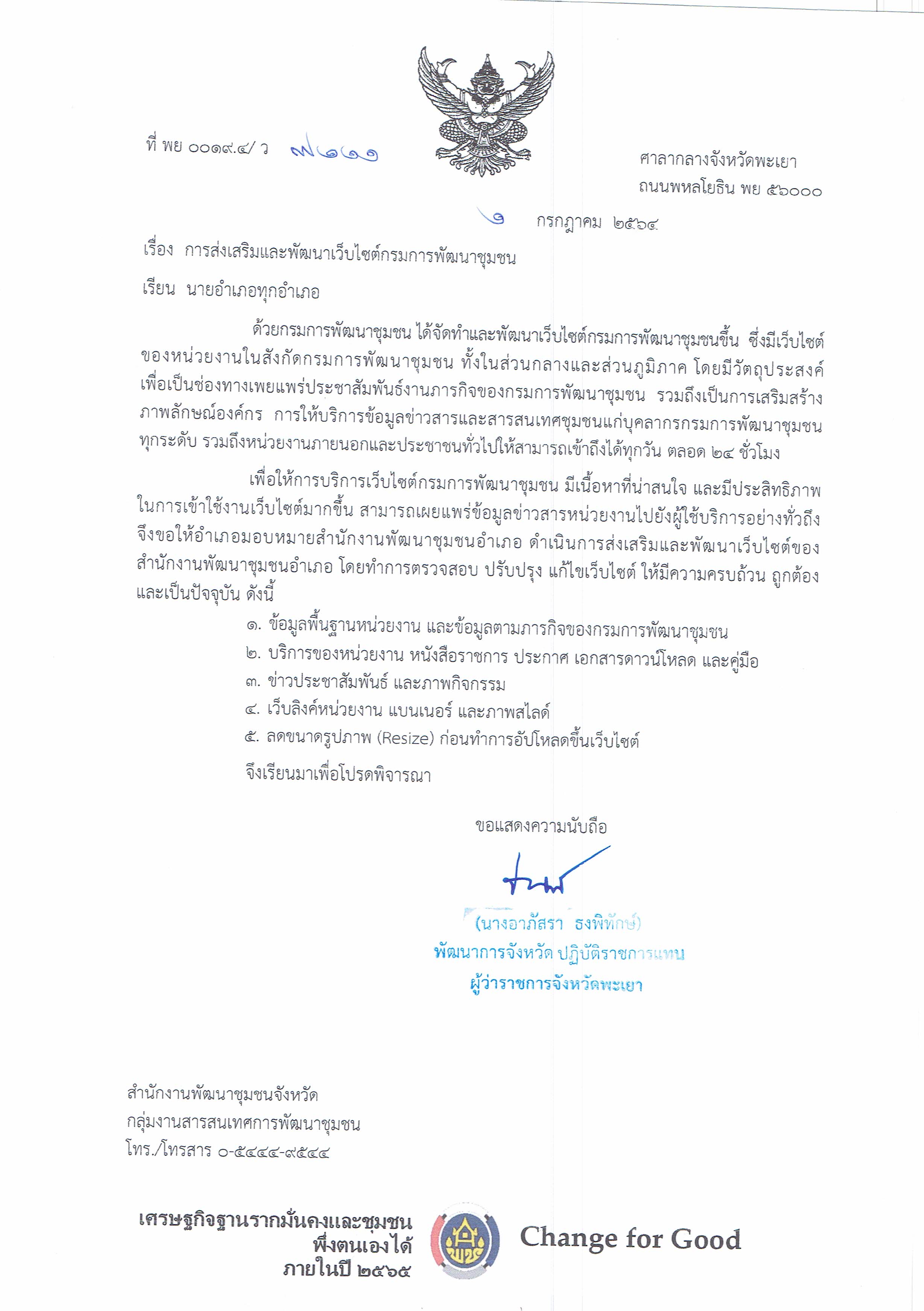 ที่ พย 0019.4/ว7111 ลว 11 กรกฏาคม 2564 เรื่องการส่งเสริมและพัฒนาเว็บไซต์กรมการพัฒนาชุมชน (01/07/2564)